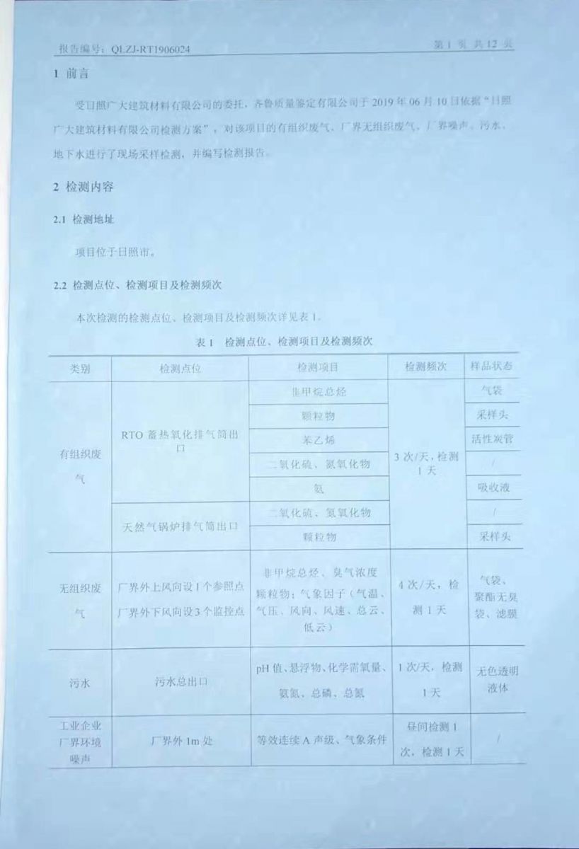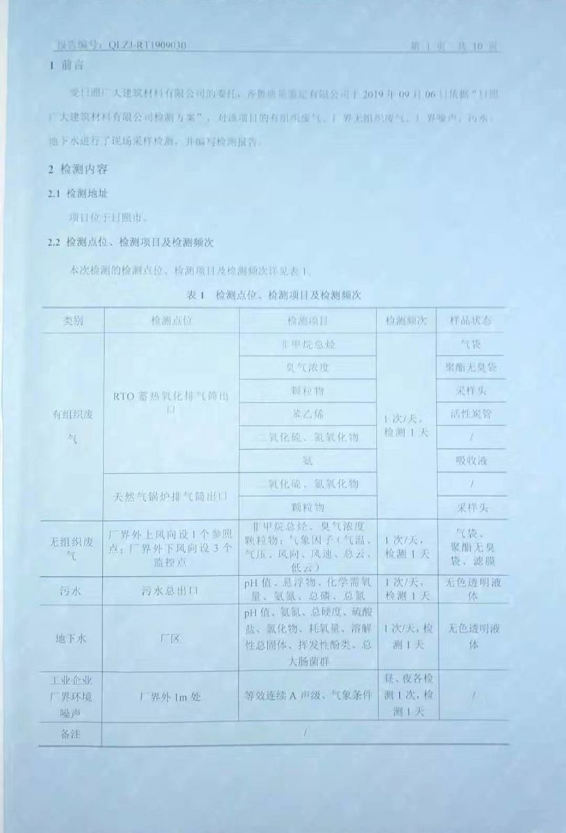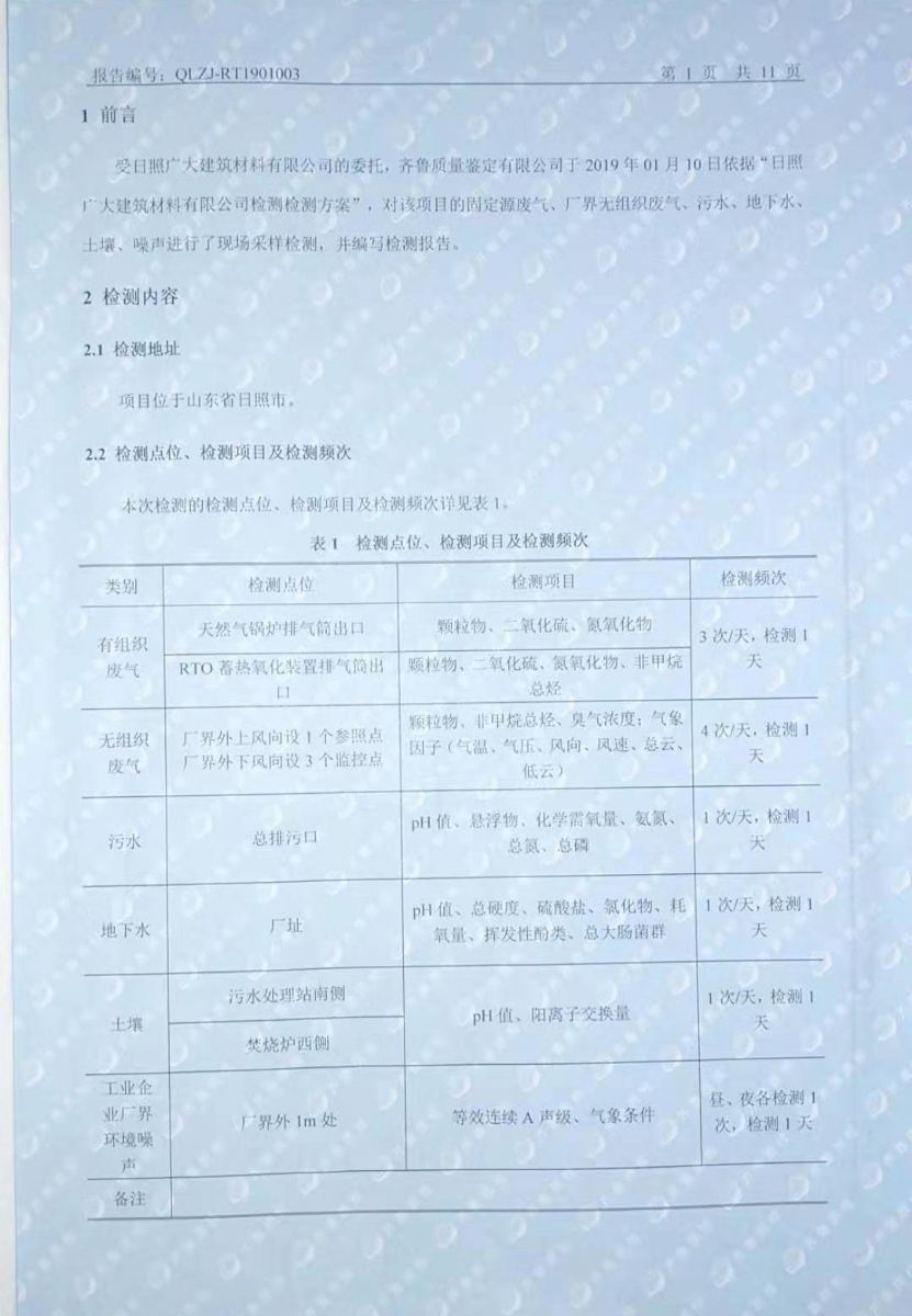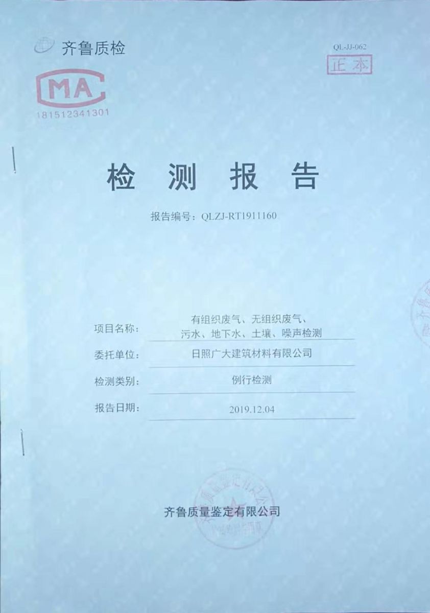日照廣大建筑材料有限公司環(huán)保檢測報告
