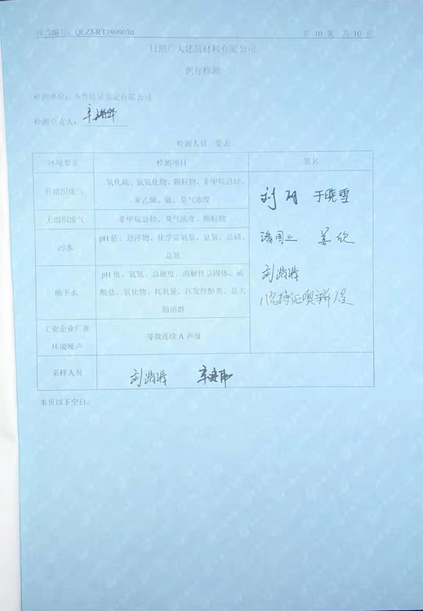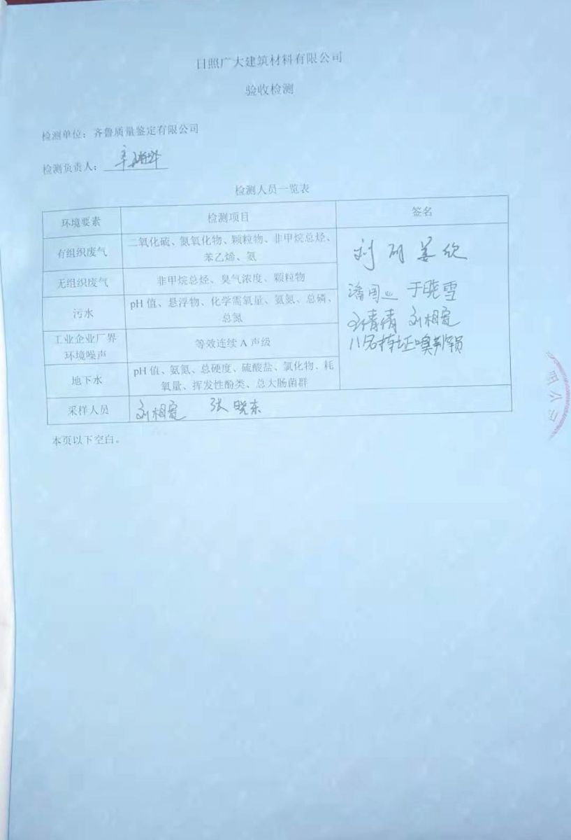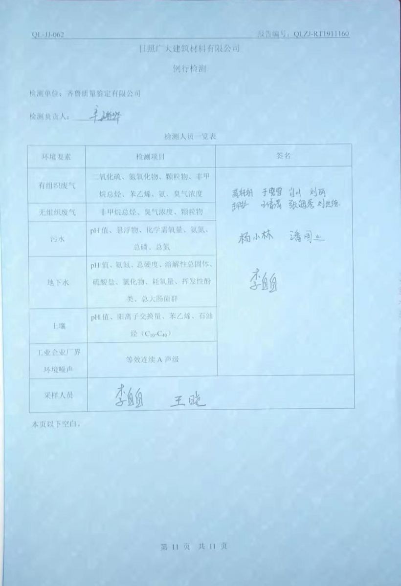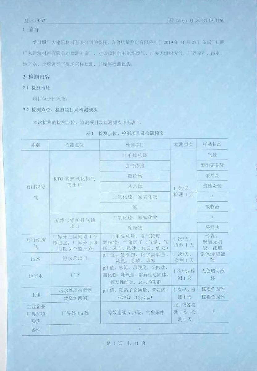 日照廣大建筑材料有限公司環(huán)保檢測報告